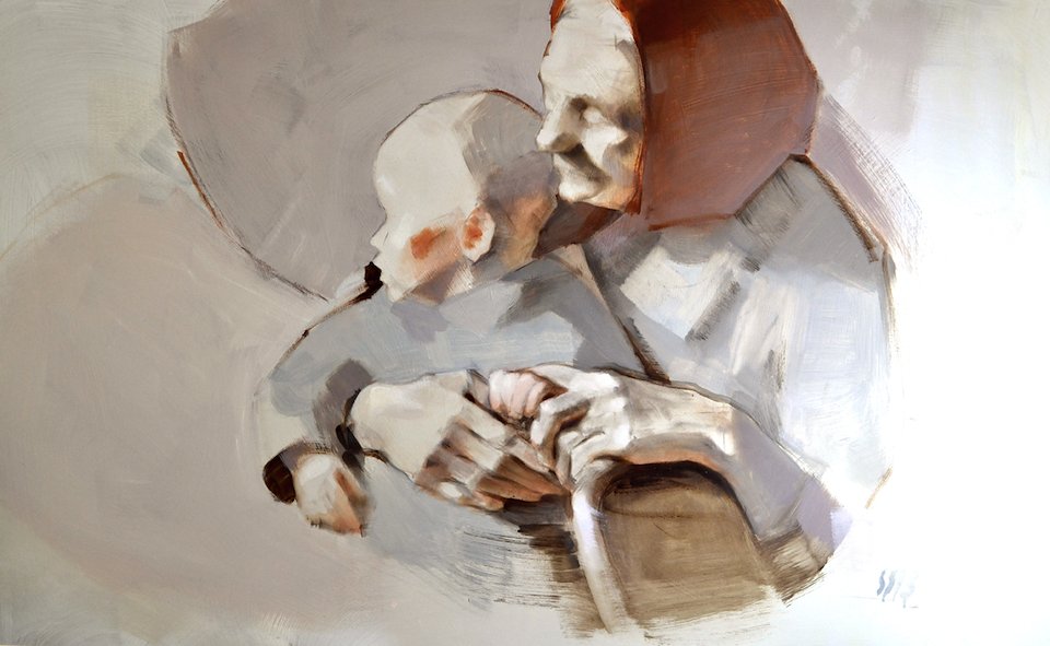 Serie: ICON. Small oilpaintings on traditionally primered wood. Holy moments.