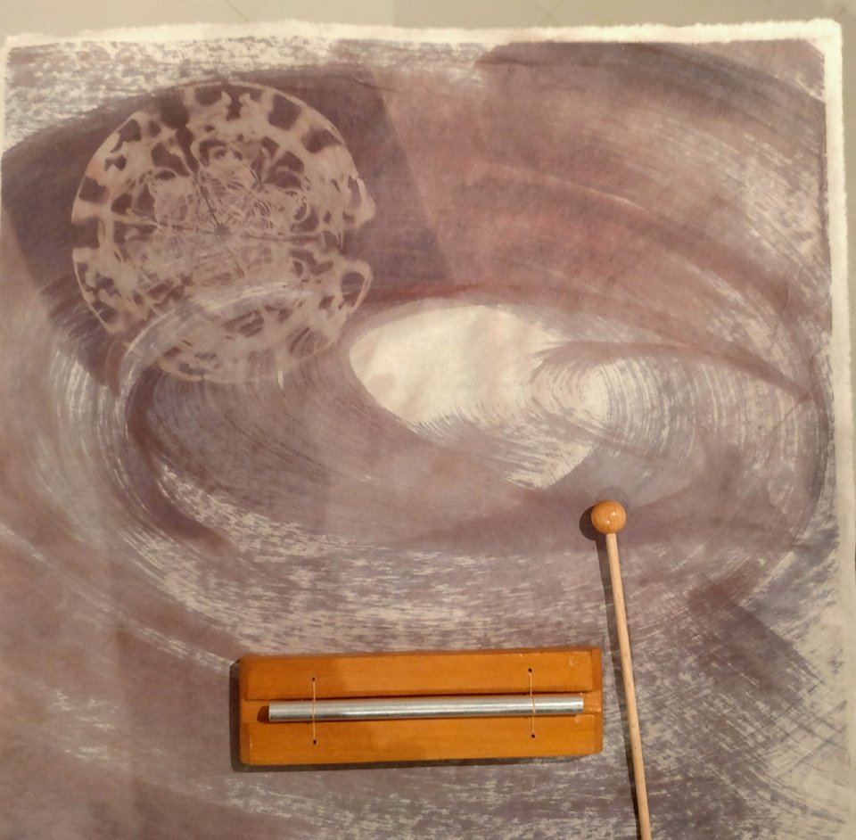 Serie LUMiNE, “F e e l t h e v e r t i c a l” , syanothype, pastel, oil on wood, 78x78x2cm