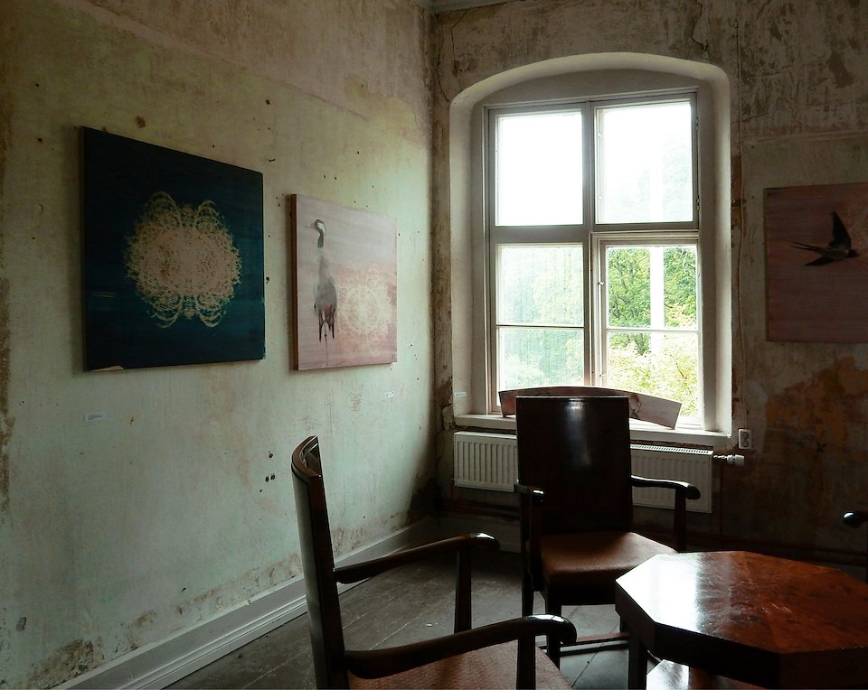 Serie LUMiNE, “f e e l t h e s i g h” , syanothype, pastel, oil on wood, 78x78x2cm