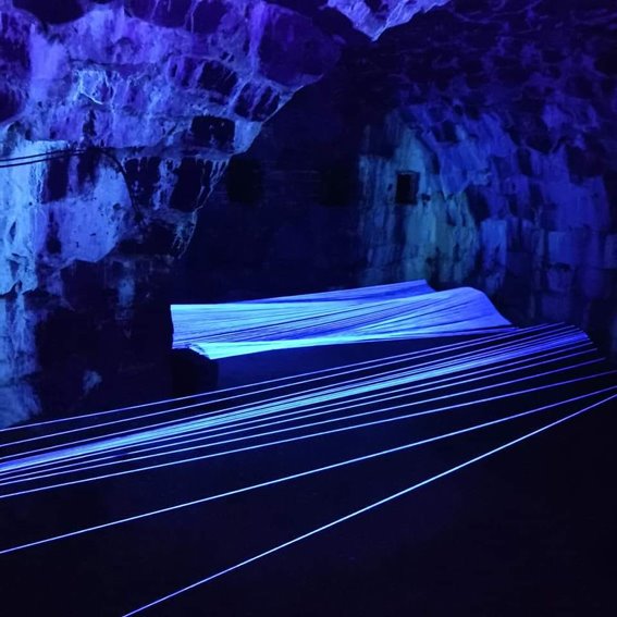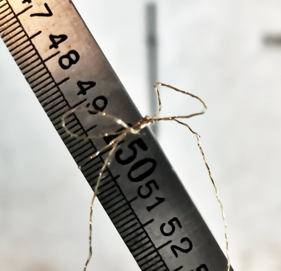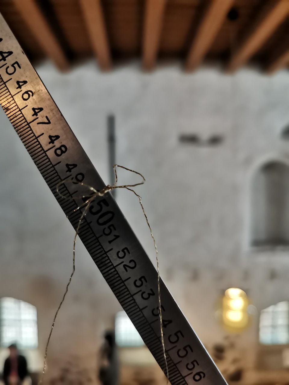 H o m i n i This 4,5 m long installation of measures displays the length of the Life on earth and every millimeter is million years. The golden thread represents us humans as a specie in this segment of evolution and time. We have been here only few hundred thousand years - not even a millimeter.