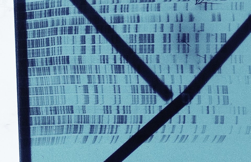 Sonata1, detail. Made of DNA-sequence-film and musicstand